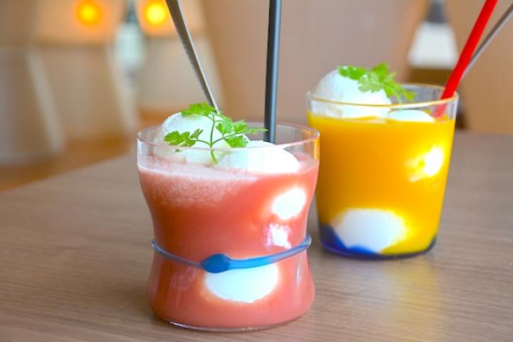 制作体験のあとは、富山ガラス工房に併設された「glass×cafe Clie(グラスカフェ クリエ)」に立ち寄ってみてはいかがですか? クリエでは、ランチやスイーツをガラス作家手作りのグラスでいただくことができるんですよ。 初夏のオススメは、甘酸っぱいスッキリとした味わいの「マンゴースムージー」と「グァバスムージー」(いずれも520円)。ガラスにより一層親しみを感じることができるのが嬉しいですね。 工房やカフェ、ショップが一体となった「富山ガラス工房」。富山を訪れた際は、“ガラスのまち”を感じに、ぜひ足を運んでみてはいかがですか?