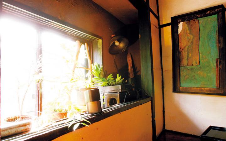 創業約100年の画材店「月光荘」が手がける、画材倉庫を改装したカフェバー。ビルの屋上にたたずむ銀座の隠れ家的存在。古材などを用いた屋内席に加え、庭木に囲まれた開放的なバルコニー席もある。
