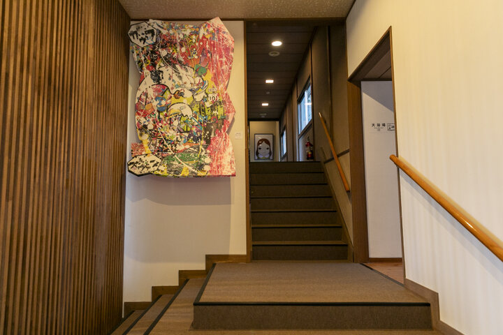 古き良き銭湯文化の象徴である「富士山の絵」を現代の感性でのびやかに表現したこの作品は、阿部倉温泉の魅力そのもの。クラシカルな温泉の情緒に、アートが新しい息吹をもたらしています。お湯につかりながら静かに眺めていると、自分の中にある“やわらかな感性”がふと目を覚ますような、そんな不思議なひとときが訪れます。
