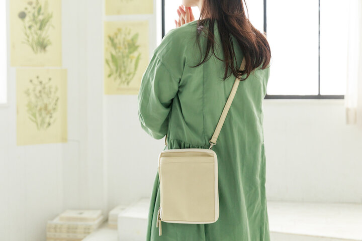 「タテ型収納トラベルポーチ」(8,800円)。同じシリーズで「マルチユースポーチ」や「ジュエリーポーチ」もあり。