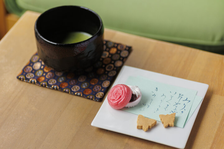 「茶庭ノ膳」(ドリンク付き)1540円。冬季は抹茶味がチョコレート味の加加阿(カカオ)に替わる