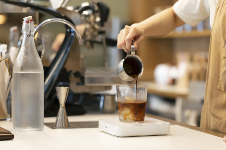 鶴岡八幡宮の参道である段葛(だんかずら)沿いの「VERVE COFFEE ROASTERS(ヴァ―ヴ コーヒー ロースターズ)雪ノ下店」は、カリフォルニア発のロースターが手がける洗練されたカフェ。窓の外に見える石灯籠や桜並木が、鎌倉の朝に古都らしい彩りを添えます。