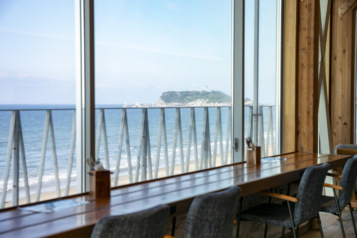 七里ヶ浜に面した「Espresso D Works yellow 七里ヶ浜」は、海に向かうカウンター席がり、朝日と青い海を独り占めできるとっておきのカフェです。朝の光が海面にきらめくなか、コーヒー片手に過ごす時間は、何にもかえがたい贅沢なひととき。晴れた日には、江ノ島はもちろん、雄大な富士山の姿まで見渡せるのも嬉しいポイントです。
