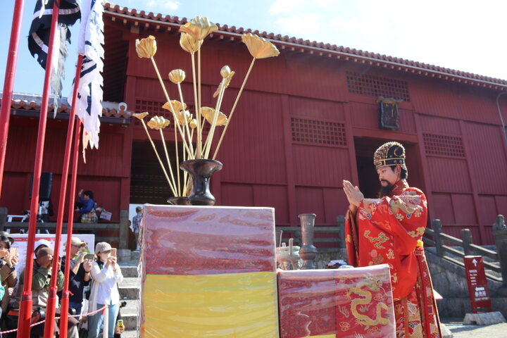 首里城公園では、2026年1月1日(木)~3日(土)に朝拝御規式の一部をはじめ、国王・王妃の出御、御座楽の演奏や琉球芸能の宴の披露など、華やかな琉球王国文化の魅力に触れられる「新春の宴」を開催します。最大の注目は、約6年ぶりに甦った首里城正殿です。外装工事が終了し、初めて新年を迎えます。 ※正殿内部は、現在非公開。 今回は特別企画として、万国津梁の鐘「新春鐘撞き体験」を実施します。万国津梁の鐘は、1458年に琉球王国で作られ、現在は国の重要文化財として指定されています。 鐘の表には「琉球国は南の海の良いところにあり、中国と日本の間にある蓬莱(ほうらい)の島で、船で万国の津梁(しんりょう)、いわば架け橋となって貿易を行い、国に宝物が満ちている」という意味の銘文が刻まれ、琉球王国が海を越えて世界の国々との交流を通して栄えたことを伝えています。