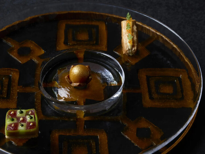コラボレーションメニュー:リーガロイヤルホテル大阪 ヴィニェット コレクション「レストラン シャンボール」、卓上を彩る小さなスターター(ランチ・ディナー各コースの一品として提供)、販売期間:2025年10月4日(土)~12月14日(日)