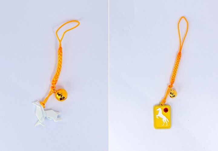 左:白・銀・金の3色がそろう「開運守り」 右:「金運守り」