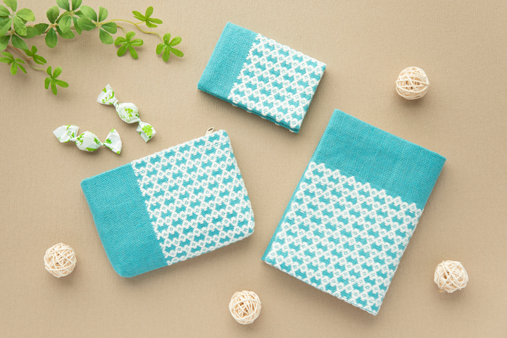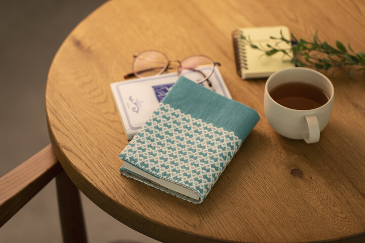 連なる刺し目の模様と澄んだ色合いが、読書時間をそっと彩るブックカバー
