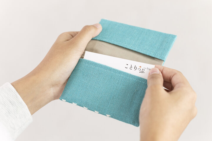 こぎん刺しの細やかな模様がきらり。凹凸の表情がさりげなく映え、名刺交換の瞬間を印象深くしてくれます