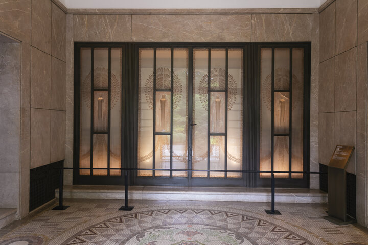 本館 1階の正面玄関。ラリックのガラスレリーフ扉
