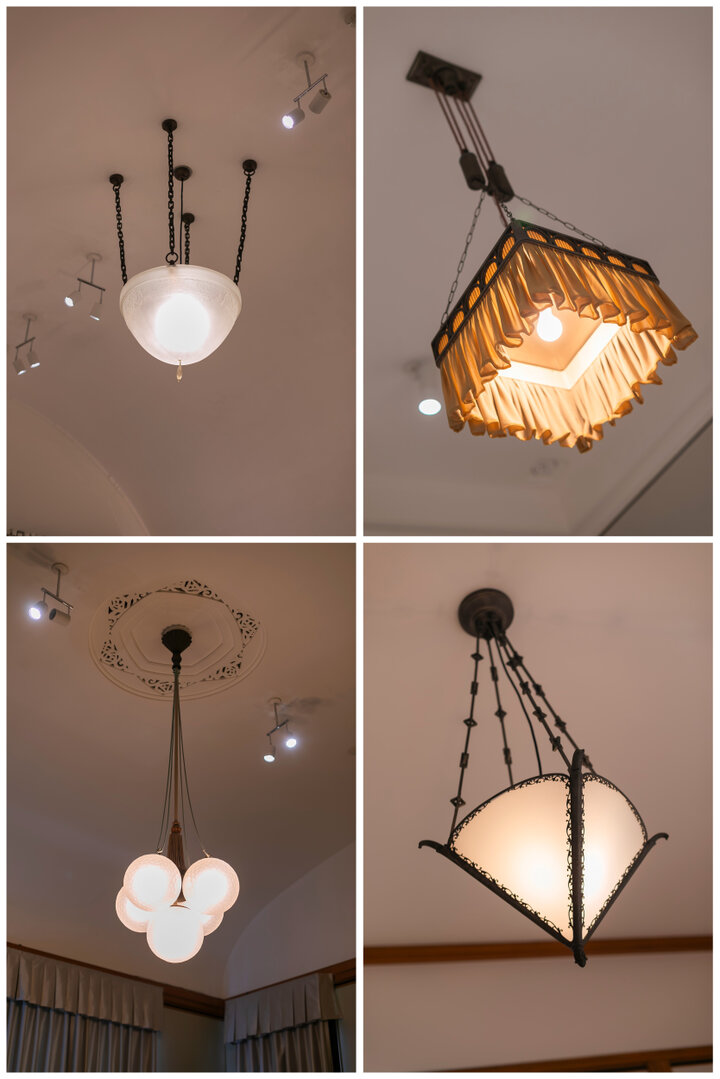 オリジナルの照明が美しい/左上:本館 殿下居間/右上:妃殿下寝室/左下:妃殿下居間/右下:殿下寝室