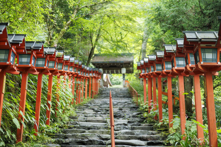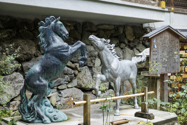 かつては雨乞いのときには黒馬を、雨止みのときには白馬を神様に奉納していましたが、祈願するたびに生きた馬を奉納するのは大変。時が移ろうにつれて生きた馬の代わりに馬の絵を描いた木板を奉納するようになったと伝わります。 授与所には龍や水にちなんだ授与品のほか、馬にあやかった「何事もうまくいく」ストラップやステッカー、部屋や玄関に飾っておきたい土鈴もあります。 本宮の参拝後は清らかな貴船川沿いを歩いて結社と奥宮へ。三社を詣で、ご利益を授かりましょう。