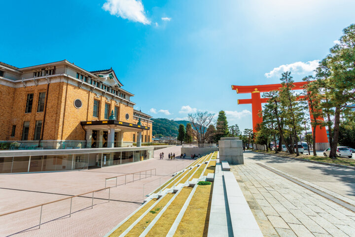 1933(昭和8)年に開館した90年以上の歴史を刻む「京都市京セラ美術館」。本館は日本の公立美術館建築の中でもっとも古く、和洋が融合した帝冠様式と呼ばれる建築の代表格で、美術館の建築や庭園も見どころのひとつです。ミュージアムショップやカフェも充実しており、オリジナルグッズは気の利いたおみやげにもなりそう。
