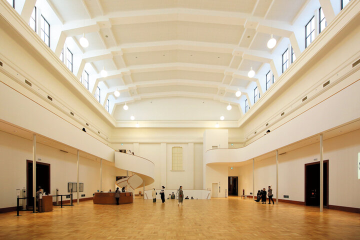 本館の中央ホールは高い天井とらせん階段が印象的な空間