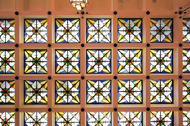 2階の天井にはレトロなステンドグラス