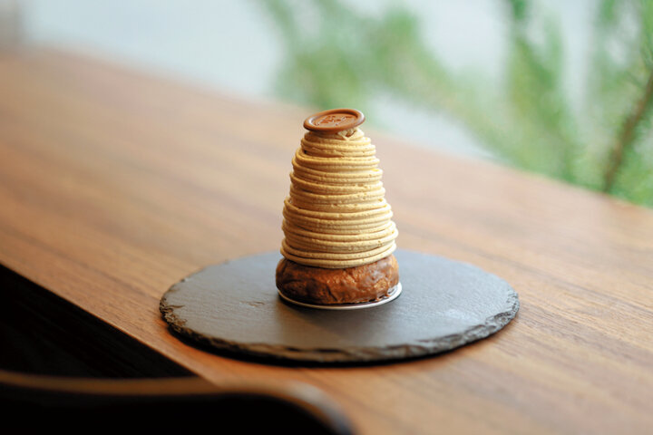 モンブラン972円には、栗の風味を生かせるやさしい味わいのミルクチョコレートを使うを使う