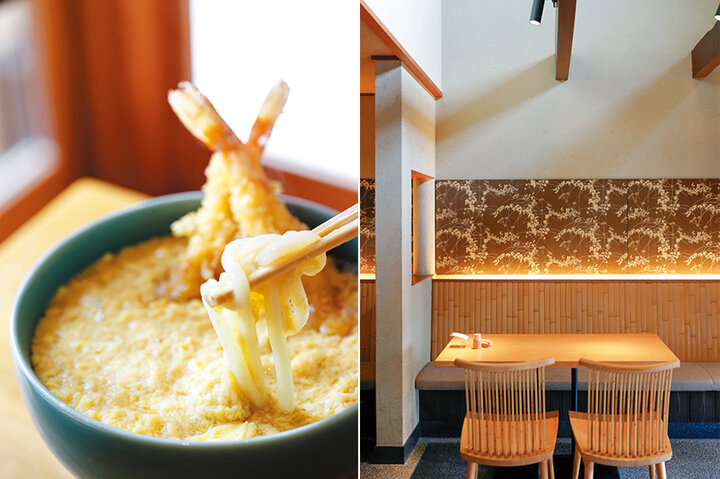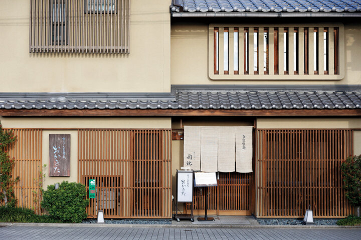 1940(昭和15)年創業の京うどん専門店「京うどん生蕎麦 おかきた」。その特徴は、麺、だし、具材が調和し一体となるバランスのよさ。まとめ役となるだしは、天然利尻昆布とうるめ、めじか、鯖の節からひく。もちろん麺も自家製で、挽きたての新鮮な小麦から打ち上げる色白の細めの麺は、コシがありながらもだしがよくしみ込む。