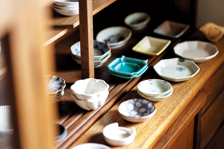 古い町家を改装した器を中心とするギャラリー「京都 おうち 岡崎本店」。「暮らしを楽しむ」ことをテーマにした著書もある店主の田中千恵さんが、ていねいに手入れしながら、選りすぐったよいものを使う楽しさに目覚め、このギャラリーショップを開いたのは10年前の2015年のこと。全国の作家による陶磁器をメインに、ガラス、木工、竹細工など、日々の暮らしを彩るアイテムがそろいます。