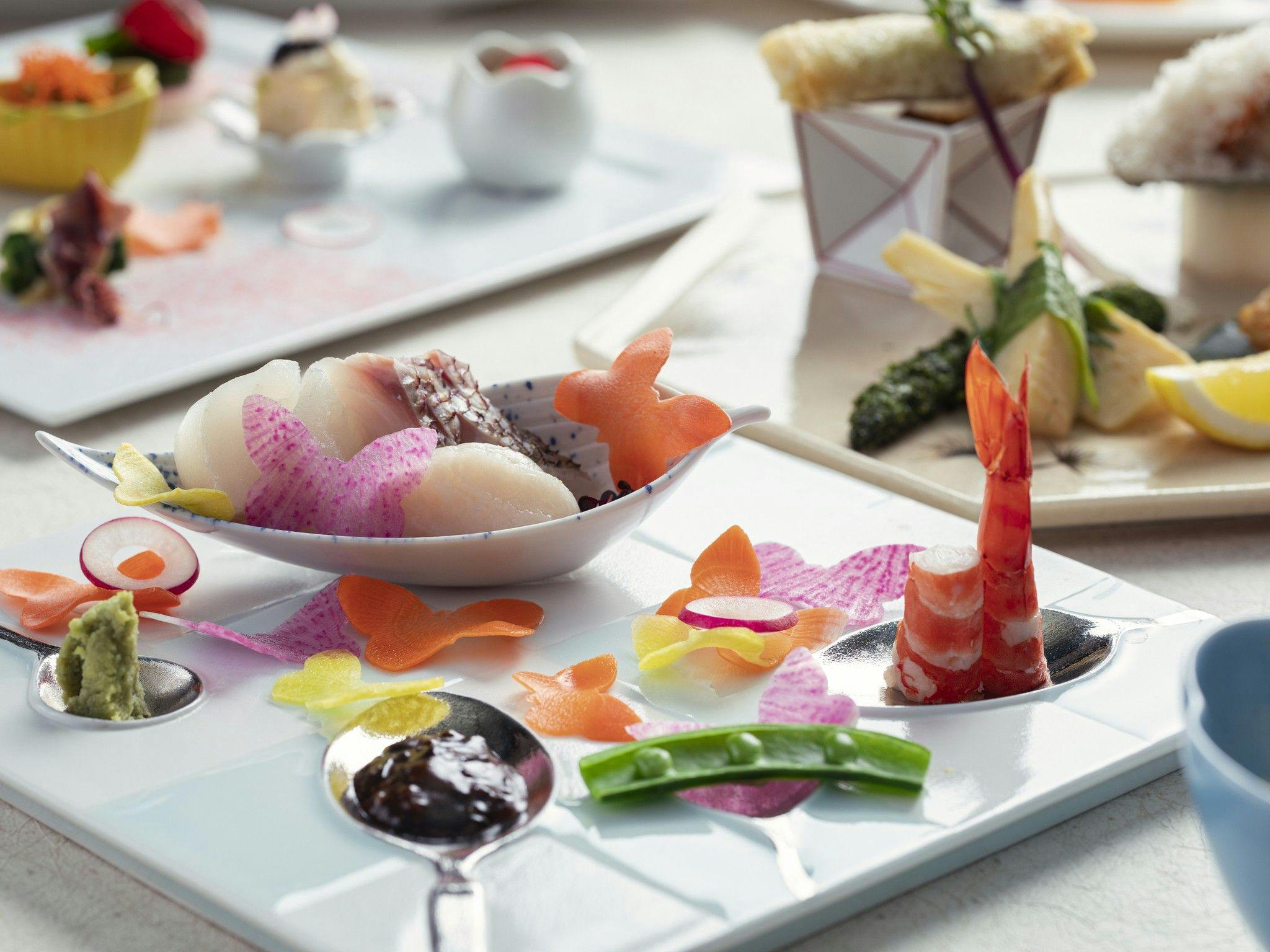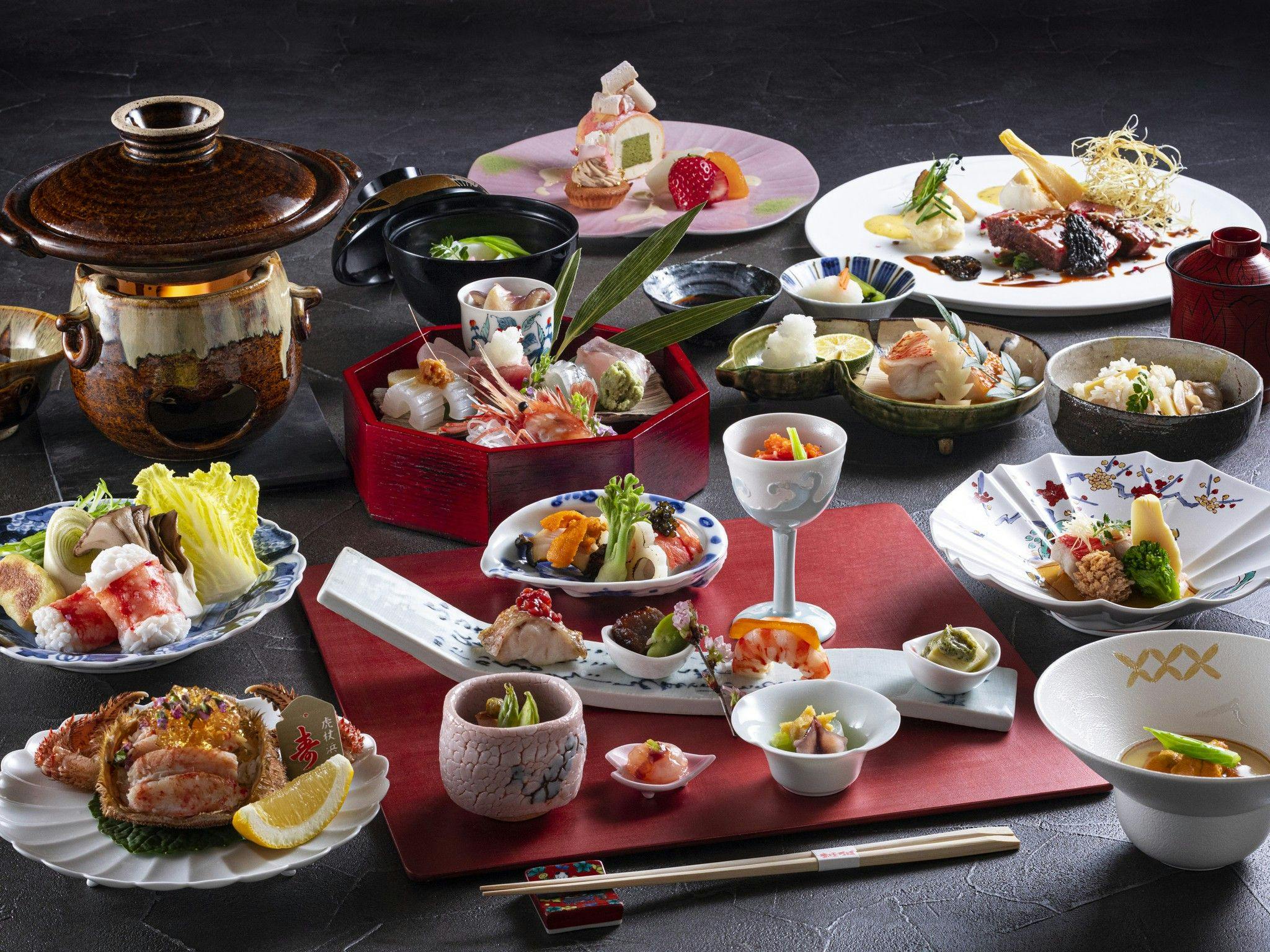 湯処は、最上階の「雲井の湯」と日本庭園を望む「地縁の湯」。美肌をうながす硫黄泉をはじめ、地獄谷という世界稀有な源泉が湛える4種の泉質が、旅人を癒します。食事は創業より受け継がれる心意気を汲みながら、とれたての旬、地産の滋味と登別の四季、そして滝乃家ならではの創意で彩る「会席料理」を楽しむことができます。