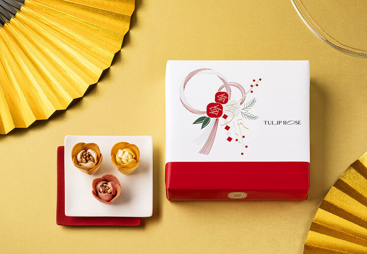 「TOKYO TULIP ROSE(TOKYOチューリップローズ)」は、『チューリップローズ 9個入<迎春>』を2025年12月26日~2026年1月初旬の年末年始限定で販売します。 新年に甘く香るフラワーガーデンを贈る『チューリップローズ 9個入<迎春>』。おめでたい紅白に、お正月飾りをデザインしたTOKYOチューリップローズらしい上品な雰囲気です。代表作『チューリップローズ』から、定番「バター」「チーズ」に季節限定「アップルバターキャラメル」の3味をフラワーボックスのように詰合せました。 【商品名】チューリップローズ 9個入<迎春> 【内 容】チューリップローズ バター・チーズ・アップルバターキャラメル 各3個 【期 間】2025年12月26日(金)~2026年1月初旬まで 【販売店】TOKYO TULIP ROSE 西武池袋店・阪急うめだ店・そごう横浜店・羽田空港第2ターミナル店・JR東京駅店(SWEETS GATE TOKYO店内)