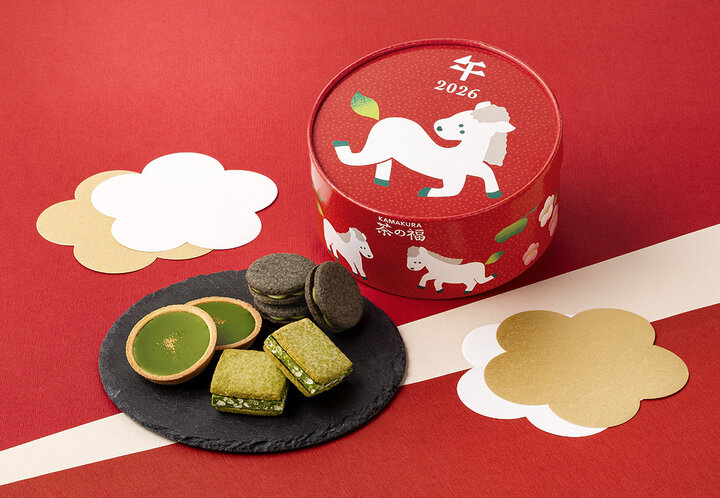 お抹茶スイーツ専門店「KAMAKURA 茶の福」では、新年を祝う<午年>の真っ赤な福BOX『午年福箱』を、2025年12月1日~2026年1月10日頃の期間販売しています。 新春を華やかに彩る赤色の『午年福箱』には「お抹茶ショコラサンド 茶の福」「濃い宇治抹茶タルト 茶の緑」「黒ごま抹茶サンド 茶の結」の3種のお抹茶スイーツが入っています。“福・緑・結”といった縁起の良い名前の茶菓が詰まった福箱は、日頃お世話になっている方へのお正月ギフトにぴったりです。 【商品名】午年福箱 【発売日】2025年12月1日(月)~2026年1月10日(土)頃 【販売店】KAMAKURA 茶の福 大丸東京店