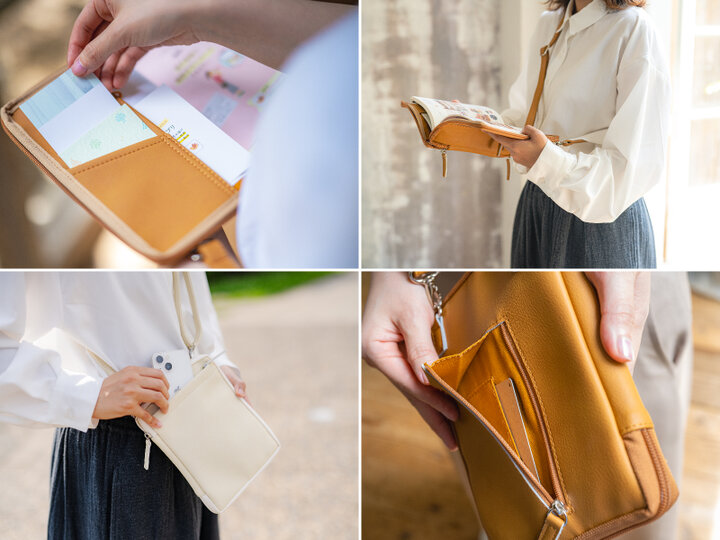 キャラメルとナチュラルホワイトの2色。 使いやすいポケットも充実