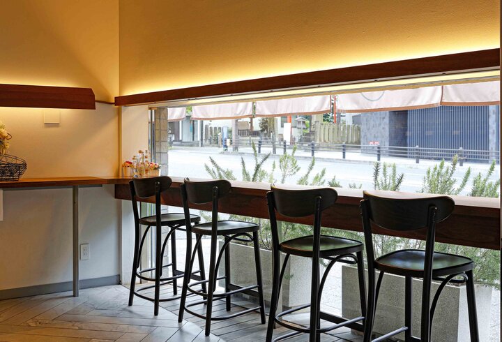 三条通に面したカウンター席でカフェタイム