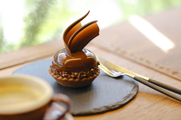 「タルトショコラ」972円。チョコレート細工の美しいグラデーションにも注目