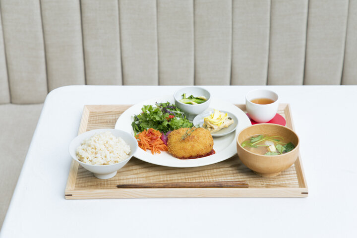 薬膳の考え方を大切にした料理は、研究員による監修のもと、美と健康に寄り添う食材を丁寧に取り入れています。「BEAUTY YAKUZEN プレート」は、メイン料理に加え、4種のデリと週替わりのスープが並ぶ満足感のある内容。野菜の彩りや香りが豊かで、食べ進めるほどに身体が軽くなるような味わいです。