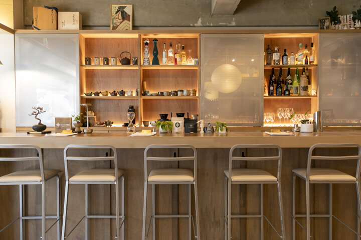 茶釜のあるカウンターで日本茶を味わう「no count」