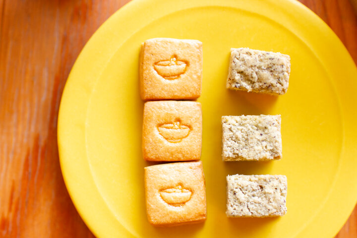 吉祥寺にある人気の菓子店A.K.Labo(エーケーラボ)さんにお願いして作ってもらっているという、和の素材を使った焼き菓子も人気です。持ち帰りも、イートインもOK。定番の「横尾サブレ」はそば粉を、「ほうじ棒」にはほうじ茶が練りこまれています。どちらもサクサクとした食感が心地よく、甘さ控えめの焼き菓子です。