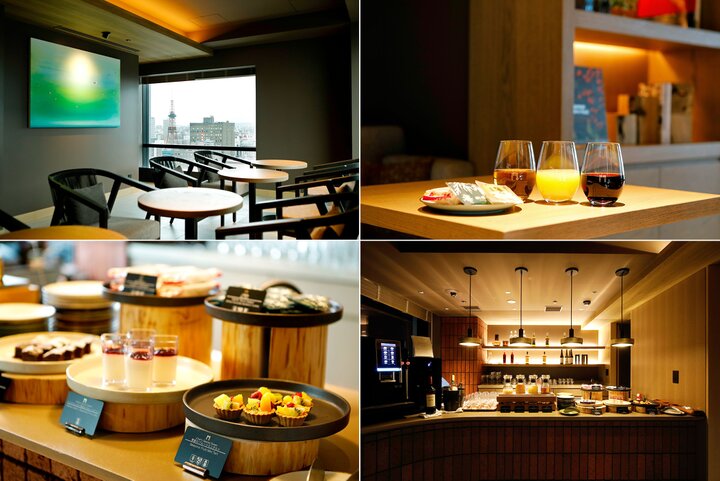 ホテルステイのお楽しみはほかにも。ナイトタイムにぜひ立ち寄ってほしいのが、最上階の20階にあるプレミアムラウンジ。ここは対象客室に宿泊した方の専用ラウンジで、飲み物やスイーツを楽しみながら札幌の眺望に浸れる特等席。大通やすすきのの夜景が一望できるのはもちろん、さっぽろホワイトイルミネーションの期間中は、日没とともに札幌駅や眼下のメインストリートが華やかに彩られ、特別なひとときを演出してくれます。