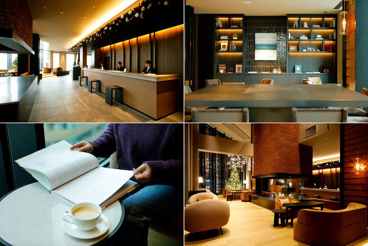 扉が開くと、目の前には開放感あふれるロビーラウンジ。レンガや木など自然素材を活かしたモダンで温もりのある雰囲気と、ホテルオリジナルのやさしく爽やかな香りに心が和らぎます。チェックインを済ませたら、ラウンジでドリンクを片手に眺望や読書を楽しみながらひと休み。暖炉に火が入る17時以降は日中とはまた違ったムードがあり、札幌の中心にいるとは思えないほどゆったりくつろげます。