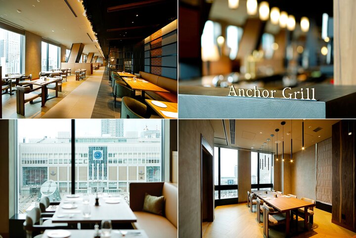メインダイニング「Anchor Grill Sapporo」。札幌駅を眺めながら食事できるのが贅沢(右下)落ち着いて過ごせる有料の個室もある