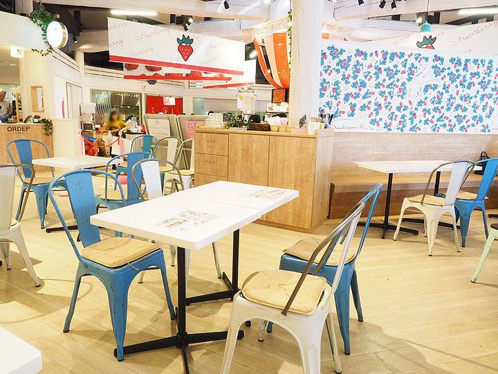 淡い色調といちごのイラストがかわいらしく、気軽に立ち寄れる空間