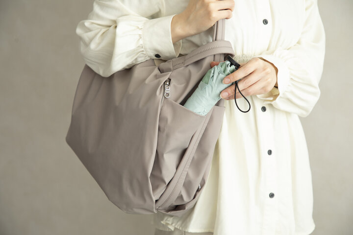 サイドのポケットは折り畳み傘やタンブラーを入れるのにぴったり。