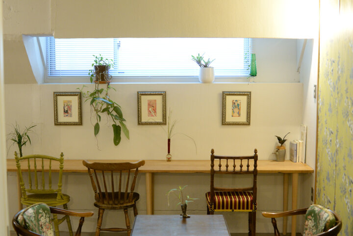 さんぽに人気の「哲学の道」のほど近く、鹿ヶ谷通沿いのヴィンテージマンションの半地下にある「Botanic Coffee Kyoto(ボタニックコーヒー キョウト)」。アンティーク家具やこだわりの雑貨をやわらかな光が照らす、隠れ家のようなカフェです。