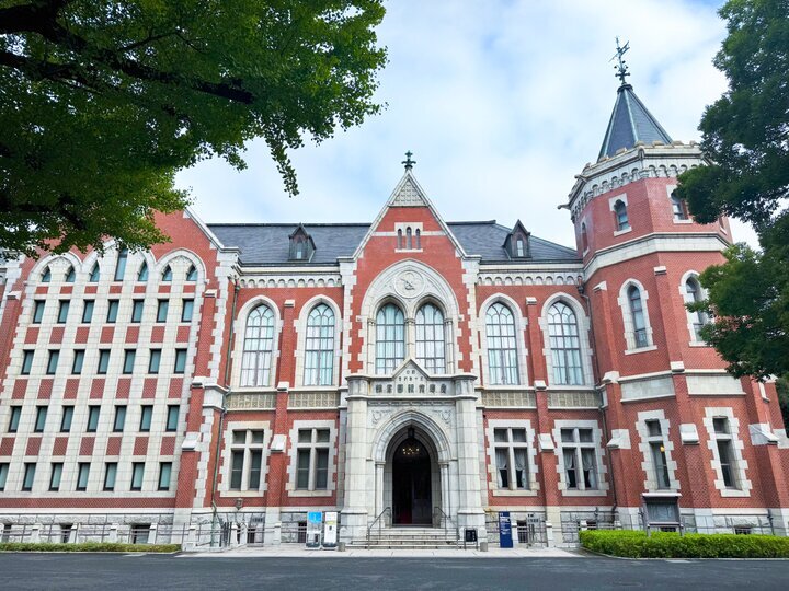 本館と書庫、八角塔(写真右)で構成される図書館旧館。赤煉瓦と花崗岩のゴシック様式が目を引く