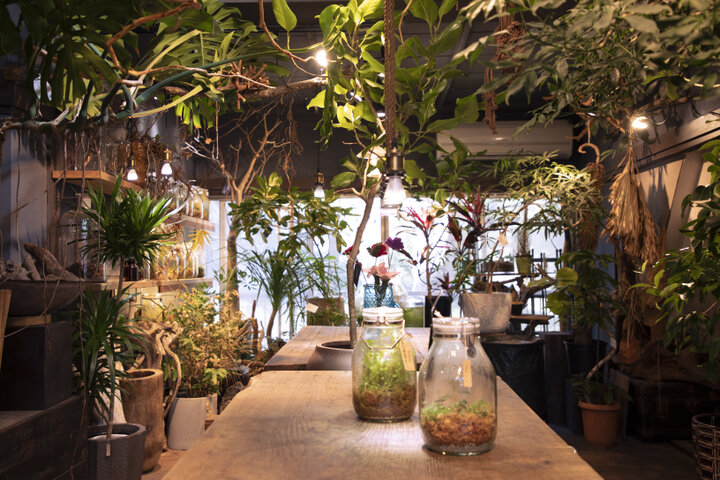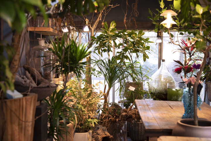 おしゃれな植物がたくさん並ぶ、東京・清澄白河の花屋さん「LUFF Flower&PlantsWORKS」(ラフ)」。店内には、色とりどりの切り花をはじめ、大中小さまざまな観葉植物がずらり。まるでジャングルのような空間が広がります。最近人気なのが、独自の世界観が広がる「放置植物」。その不思議な世界をのぞいてみましょう。
