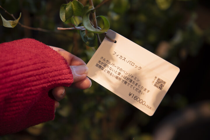 2階はさまざまな大きさの観葉植物がたくさん配置され、まるでジャングルに迷い込んだかのよう。その数は、中〜大きめサイズは70〜80鉢、小サイズは50〜60鉢も。活き活きとした緑の生命力からエネルギーを感じることができる空間に圧倒されるはず。 上村さん曰く、植物で一番大事な部分は根っこ。「育てるなかで失敗するリスクを低減するために根っこがしっかりしているものを選りすぐって仕入れています。」育てるには、明るさなど置き場所の環境が重要なので、買うときに相談してみてくださいね。