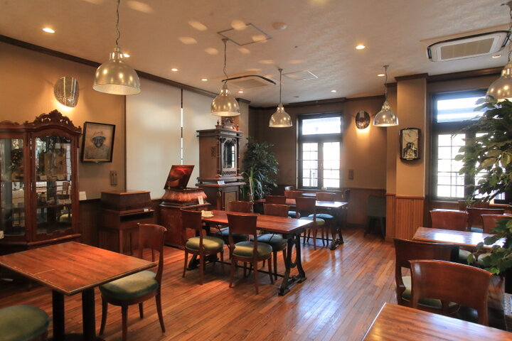 館内にはカフェスペースもあり、アンティークオルゴールの調べを愉しみながらティータイムを過ごすことができます。季節のケーキセットやパスタなどの軽食も楽しめ、ティールームだけでも立ち寄れるので、地元の人にとっても憩いの場所。よく見ると壁の間接照明は、カバーにディスクオルゴールの突起が施された本物のディスクが使われていて、漏れる光からもオルゴールの繊細な仕事が感じられますよ。