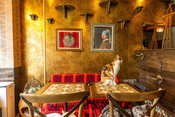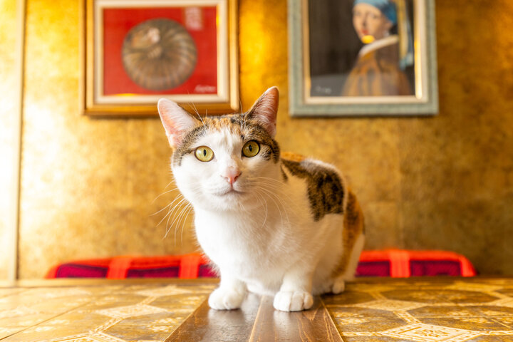 レトロ喫茶でかわいい猫がお出迎え