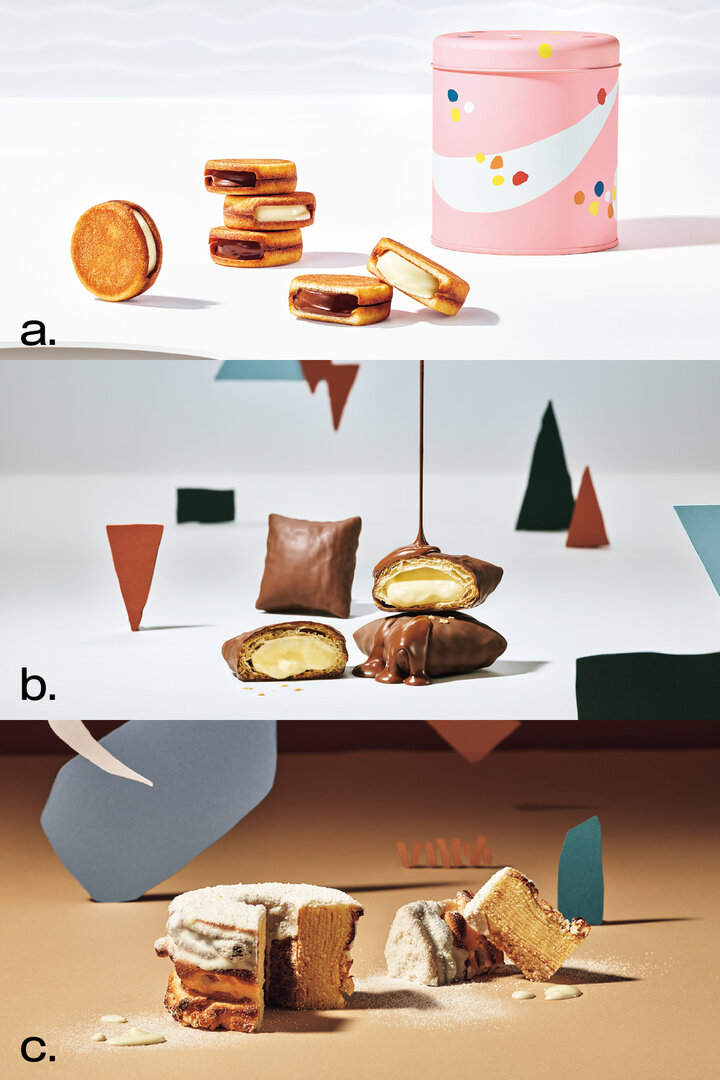 〈SNOWS〉a.スノーサンドVD缶(6個入り・白と黒 各3個入り)、b.雪まくら(4個入り)、c.森ノ幹 綿ぼうし(1個入り)