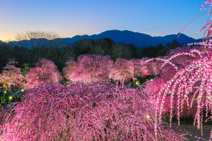 三重県鈴鹿市にある研究栽培農園「鈴鹿の森庭園」では、2026年2月21日(土)~ 3月下旬(予定)の期間限定で、一般公開を行っています。 園内にはしだれ梅の代表品種である「呉服(くれは)しだれ」を中心に、手入れの行き届いた約200本の梅の名木が植栽されています。中でも、樹齢100年を超える名木「天の龍」「地の龍」は庭園を象徴する存在で、開花の時期には園内全体が華やかな春色に包まれます。 昼間は鈴鹿山脈を借景にした雄大な景観を、夜間には幻想的なライトアップを楽しめるのも魅力のひとつです。