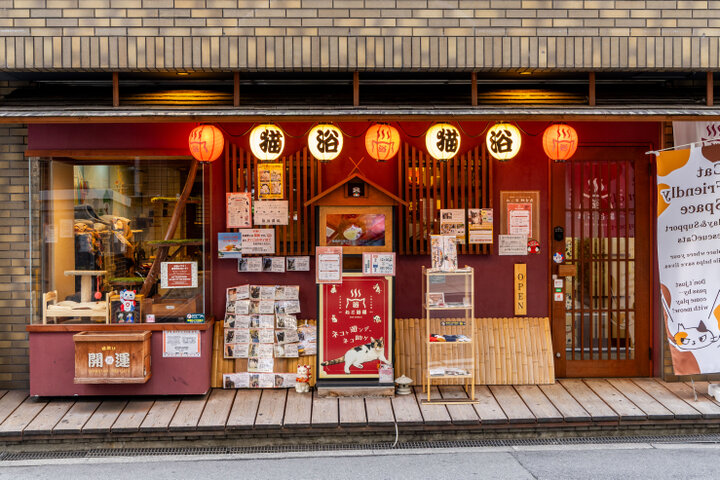 猫と触れ合える保護猫カフェに、宿泊スペースが併設された「ねこ浴場&ねこ旅籠」。大阪メトロ堺筋線・長堀鶴見緑地線長堀橋駅6番出口から徒歩2分の場所にあります。約20頭の猫がいる和室スペースが保護猫カフェ「ねこ浴場」で、平日30分1570円~(ドリンク飲み放題付き)利用可能。併設の宿泊スペース「ねこ旅籠」は1日1組限定の貸切宿泊スペースで、ベッドからガラス越しに「ねこ浴場」の様子が眺められる、猫好きにはたまらない空間です。