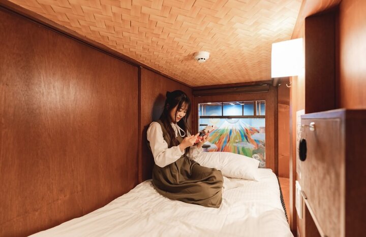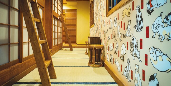 寝床からキャットビューが楽しめる宿泊スペース「ねこ旅籠」