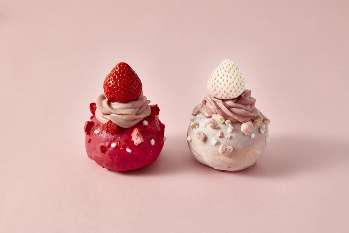 ●Butter×Roasted COFFEE LABORATORY ブリオッシュドーナツ あまおう/淡雪 カスタードとストロベリーソースを詰め込み、ストロベリーガナッシュで仕上げた2種のドーナツ。見た目も可愛く、あまおうと淡雪でそれぞれ彩りました。