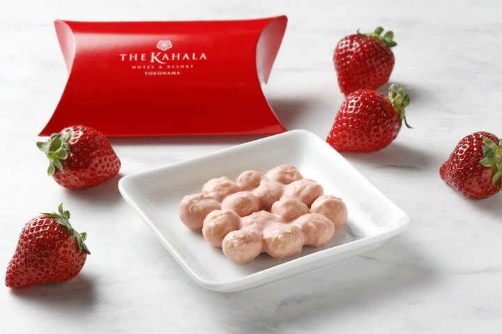 ●ザ・カハラ・ホテル&リゾート 横浜 マカダミアナッツチョコレート ストロベリーフレーバー[100個/日限定] THE KAHALA HOTEL & RESORTを代表する「マカダミアナッツチョコレート」。フランス「ヴァローナ社」のチョコレートとオーストラリア産マカダミアナッツを使用したホテルのシグネチャー商品です。期間限定の「ストロベリーフレーバー」はマカダミアナッツの甘みとストロベリーの甘酸っぱさが楽しめます。