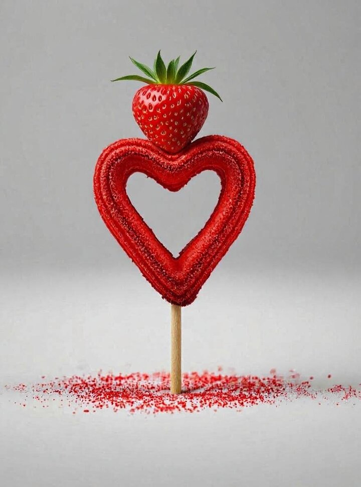 ●Blue Cocina ハート形の米粉チュロス〜苺のせ〜[350個/日限定] “見て楽しい”ד食べて美味しい”を追求し、たまご不使用&グルテンフリー100%のハート形の米粉チュロスに苺をのせました。