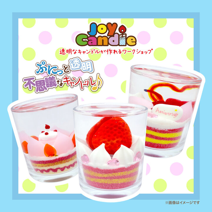 サンドアートを楽しみながらお好みのガラス細工を配置してオリジナルのキャンドルを作ることができます。当日はいちごやスイーツをメインとしたガラス細工を多く用意しています。 店舗名:ストロベリーキャンドルワークショップ 開催日:通期