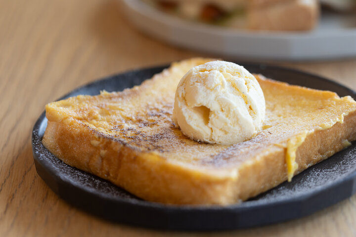 スイーツが食べたい気分なら、生食パンを使って焼き上げたパティシエ特製フレンチトーストをどうぞ。外は香ばしく、中はとろり。もともと甘みのあるパンに卵液とミルクがしみこんで、口いっぱいに幸せの味が広がります。付属のベリーソースや、トッピングで追加できるアイスとともに召し上がれ。 ほかにも、カレーライスやあんバターサンドプレートなど気になるメニューがたくさん。夏はかき氷も登場します。ランチやおやつに、おいしいひとときを過ごしてくださいね。